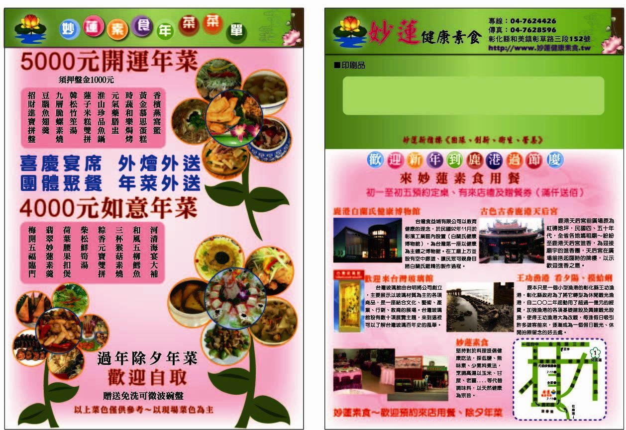 99年來妙蓮素食過新年-年菜初一~初五歡迎訂桌來店用餐***